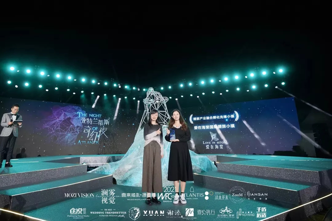 12月8日,在亚特兰蒂斯“2021中国婚礼行业颁奖典礼”中,爱在海棠国际婚旅小镇荣获“婚旅产业融合孵化先锋小镇奖”,项目总经理王佳妹女士获得“2021中国婚礼行业年度人物奖”。